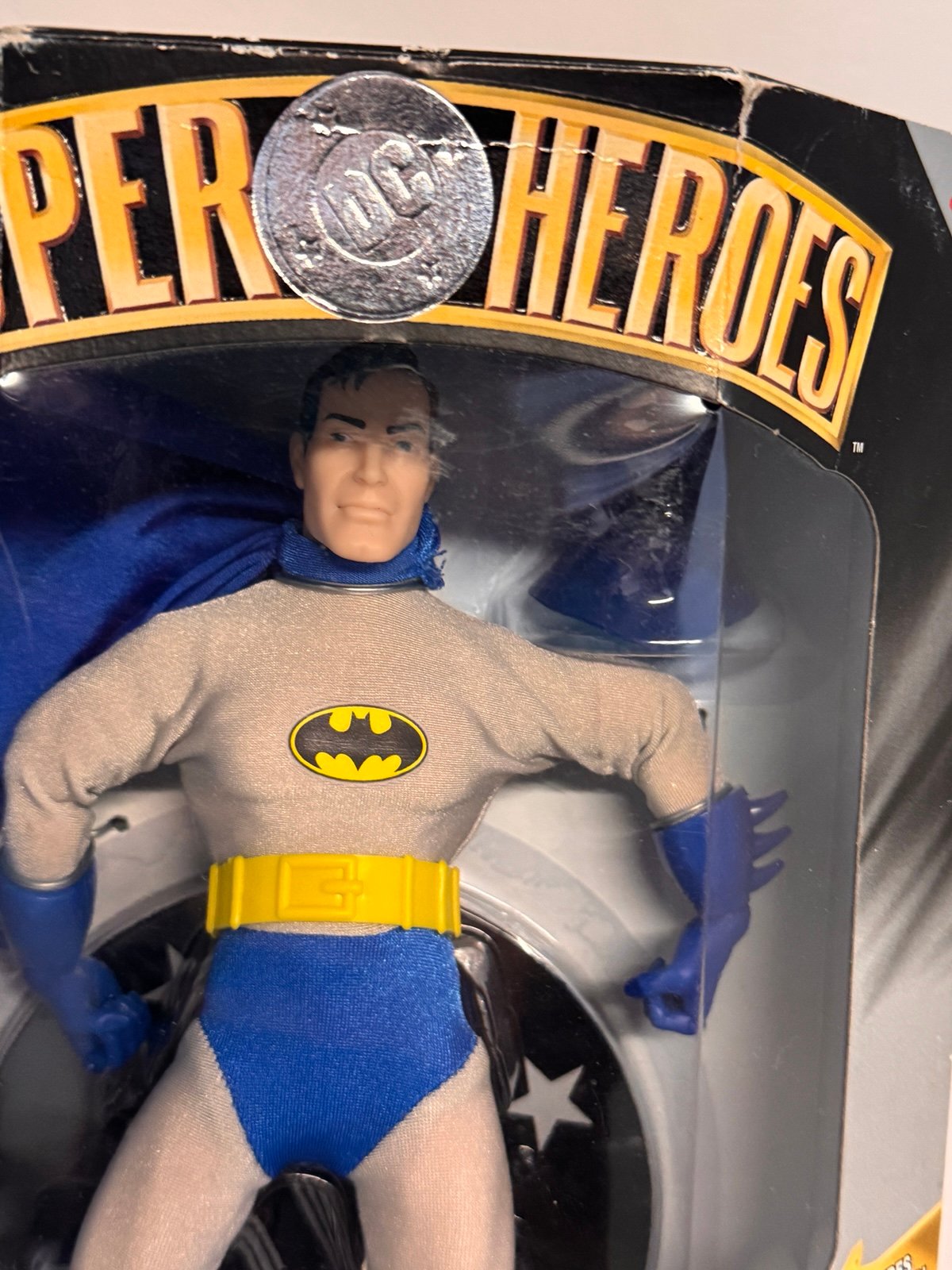 The product is a 9" Batman action figure from the DC Silver Age Collection, released in 1999. This exclusive figure is part of the Super Heroes franchise and is packaged in its original, unopened packaging. It is recommended for ages 5 and up, making it a perfect addition for any Batman fan or collector of action figures. This vintage piece captures the essence of the iconic character and is a must-have for fans of the Dark Knight.