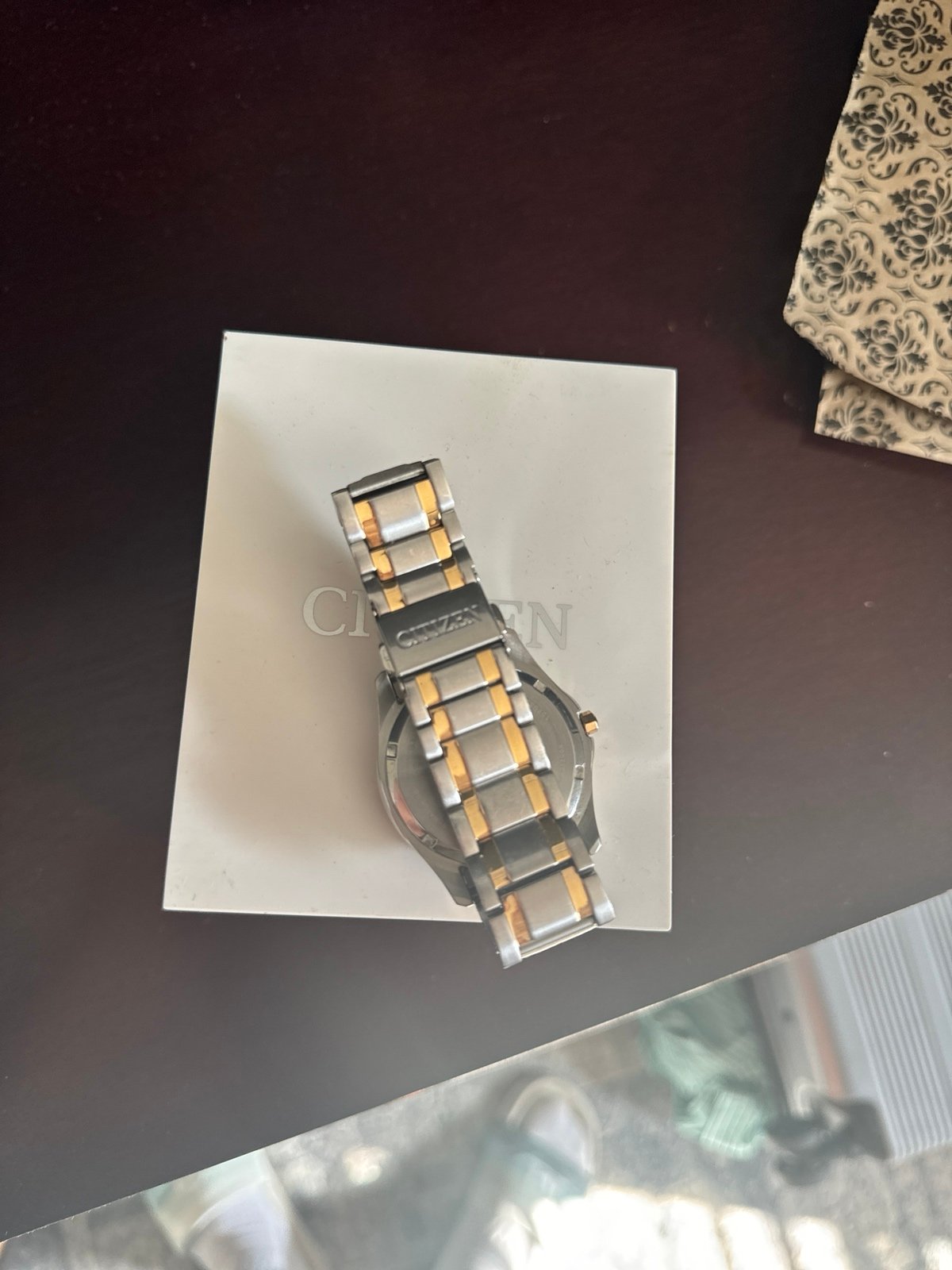 This is for a beautiful Citizens Eco Drive men’s watch with the original box, price tags, and all of the links that came with the watch should you want it resized. This watch is so stunning and will get you a lot of complements! The pictures do not do it justice. This was bought at Sam’s club originally and marked at $475. These are sought after watches and would be a great addition to any collection!