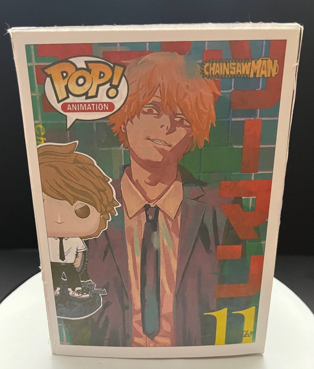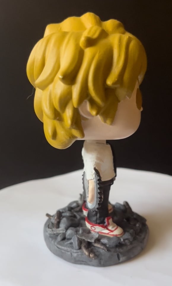 can break. Please do not drop it. This is Denji with his chainsaws on a concrete base with pipes . His eyes glow in the dark (use Uv light for better glow.) I also custom made the box. Please look at photos for box condition!