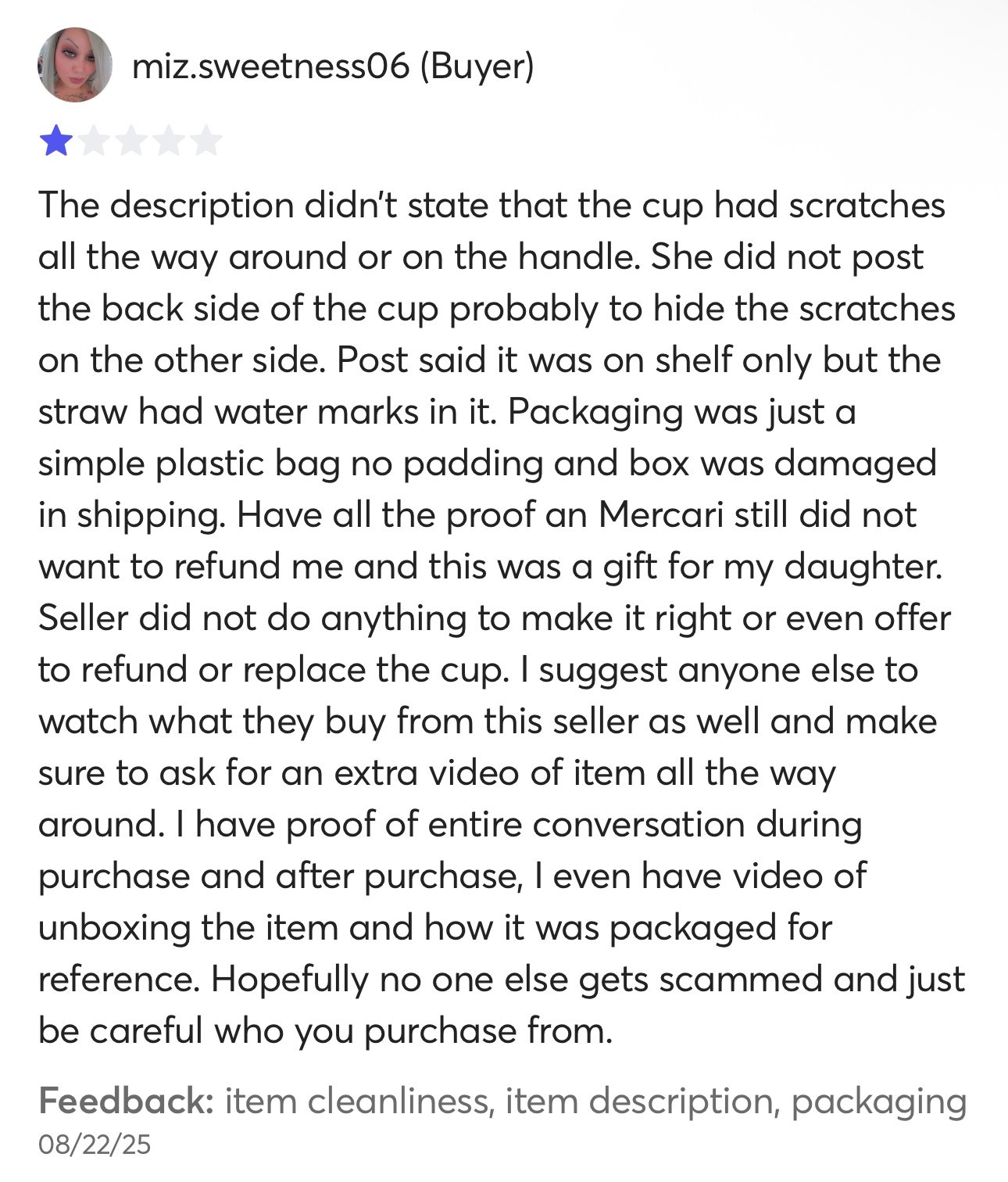 -ive already talked to her about this and she’s upset that mercari sided with me. there’s nothing else im able to do about this situation.
