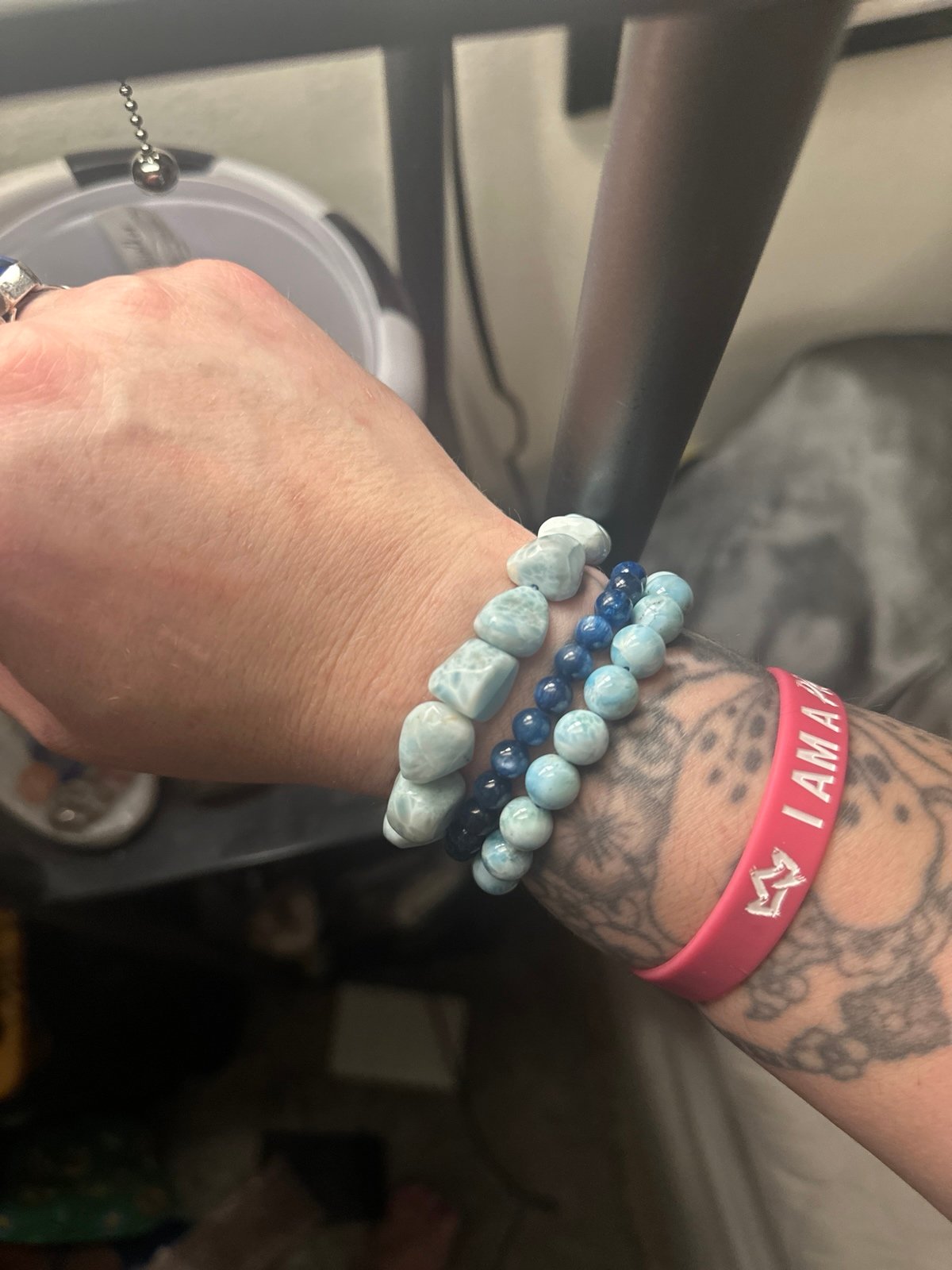 Stunning patterns on this gorgeous Larimar Freeform Bead Bracelet!