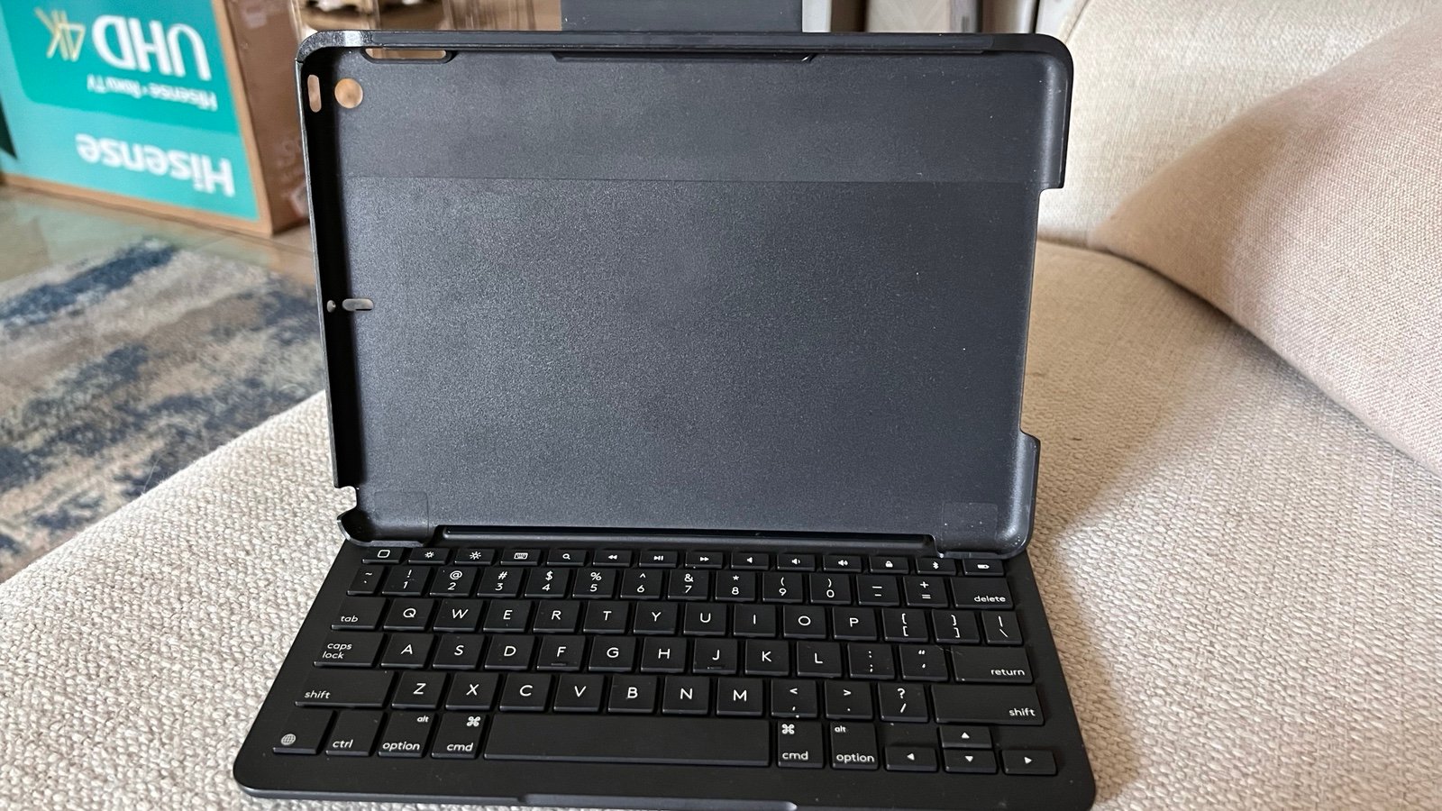 This Logi Slim Folio is made for the 10.2” Apple iPad Air. It has a pencil holder and the keyboard connects to your iPad via Bluetooth. Turn your Apple iPad Air 10.2” screen into a modern day laptop. In picture 3, it shows how even in the case, you can solely use it like an iPad tablet. Keep your iPad safe if it falls since the case closes like a laptop preventing the tablets screen from cracking.