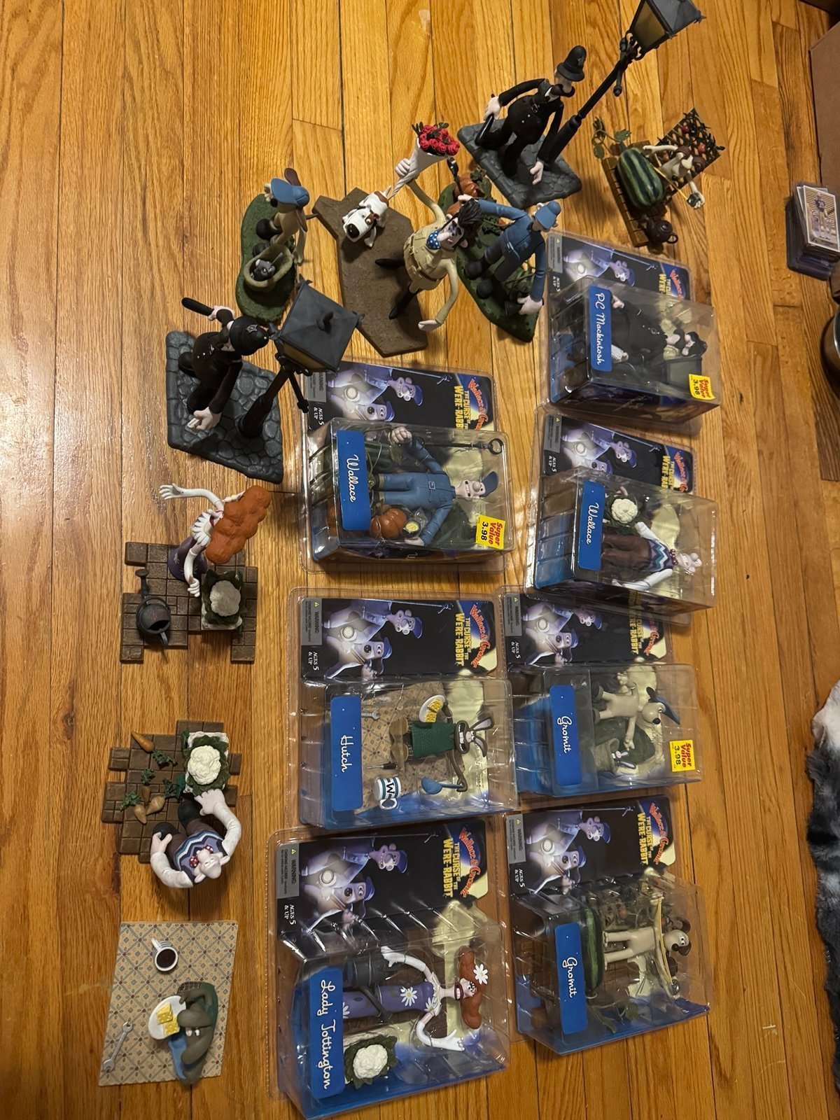 All figures except one of the policeman ones and hutch out of box one, some out of box and some in box. The one Wallace figure’s base is hot glued together due to age and is missing a gnome. I have other listings up for them separated. Please dm me with questions or if you want to buy one separately. VERY open to offers.