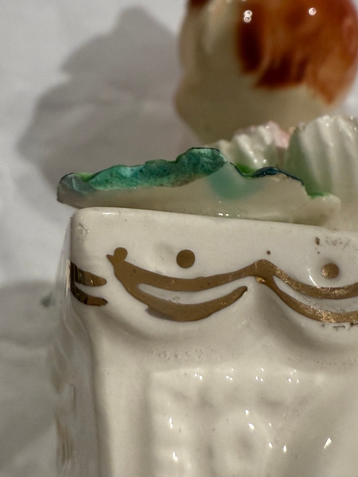 CONDITION IS GREAT FOR AGE. HAS A FEW MINOR CHIPS IN FLOWER AND HAT FLOWER (pictured). PLEASE FEEL FREE TO ASK QUESTIONS OR REQUEST ADDITIONAL PHOTOS PRIOR TO PURCHASE.