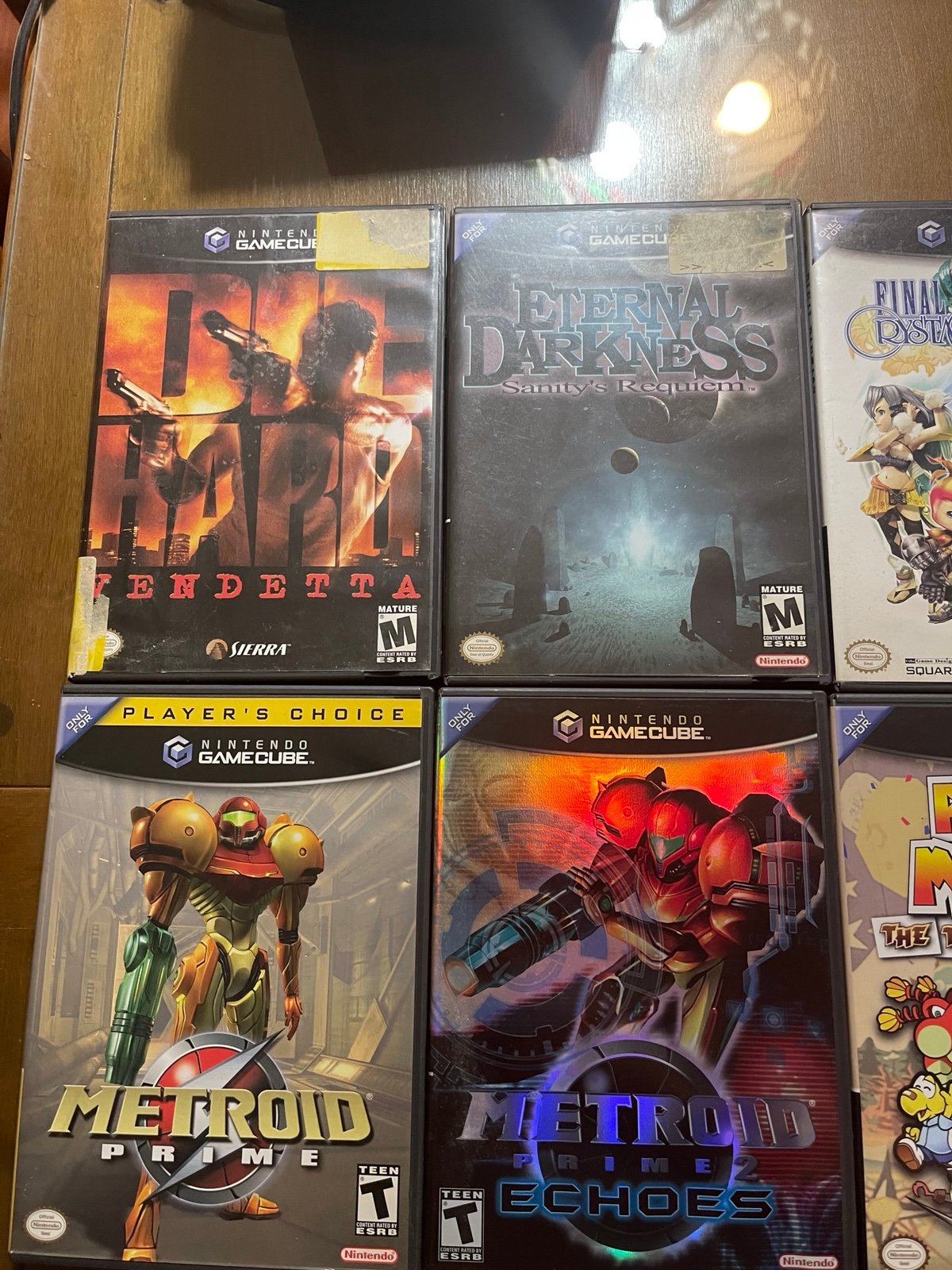 All games and system tested and working. Comes with all hook ups and controller. Final Fantasy: Crystal Chronicles, Die Hard: Vendetta, Metroid Prime, Metroid Prime 2: Echos, Wario World, Eternal Darkness, Luigi’s Mansion, Paper Mario: The Thousand Year Door, Super Mario Sunshine.