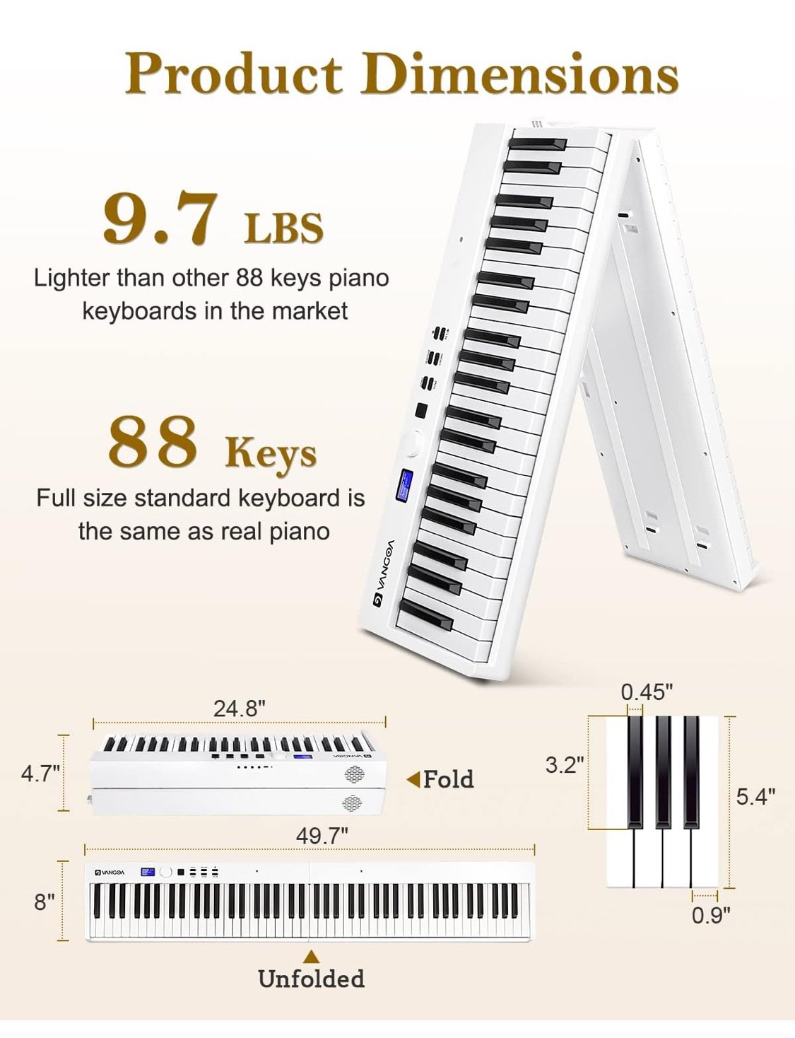 Portable folding piano keyboard, 88 semi-weighted keys. Comes with power adapter, plug-in pedal, and a used carrying case. Can also be used with batteries for more portability. It has several instrument/tone settings, and a built-in metronome. The keyboard is in perfect condition, has been barely used - selling to upgrade my setup.