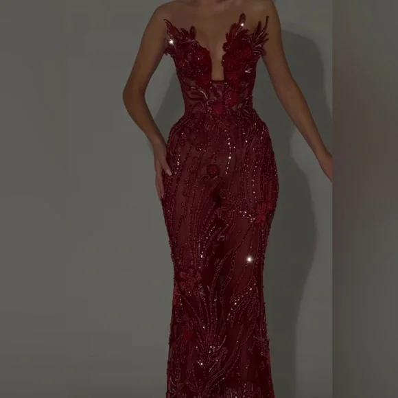 Red COSTUM MADE wedding guest gown Embellished , beaded, rhinestone Long 5’7’’Bust 97cm (38’’)Waist 82 cm (32’’)Hips 100 cm (39’’)Tags for exposure: 1.Oscar de la Renta2.Vera Wang3.Elie Saab4.Zuhair Murad5.Carolina Herrera6.Marchesa7.Monique Lhuillier8.Alexander McQueen9.Valentino10.Jenny Packham11.Ralph Lauren12.Christian Dior13.Givenchy14.Gucci15.Chanel16.Badgley Mischka17.Reem Acra18.Pronovias19.Dolce & Gabbana20.Saint Laurent21. Maria Lucia Hohan