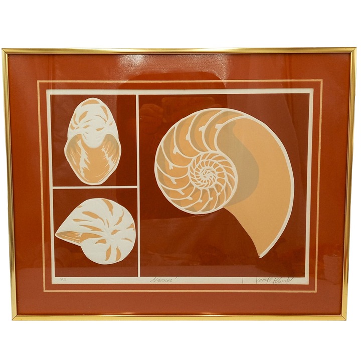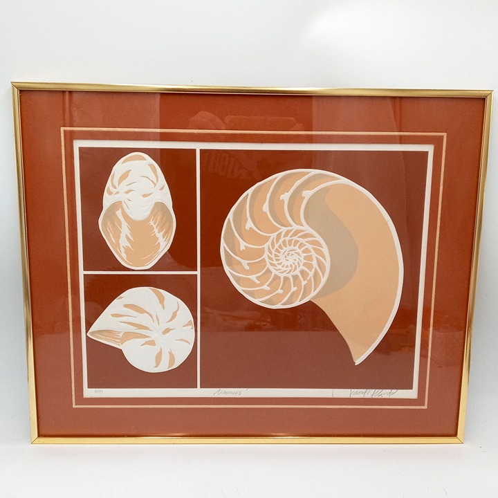 Seashell Framed Art Print Vintage 1980s Nautilus Beach Sand Sea Shell Home Decor