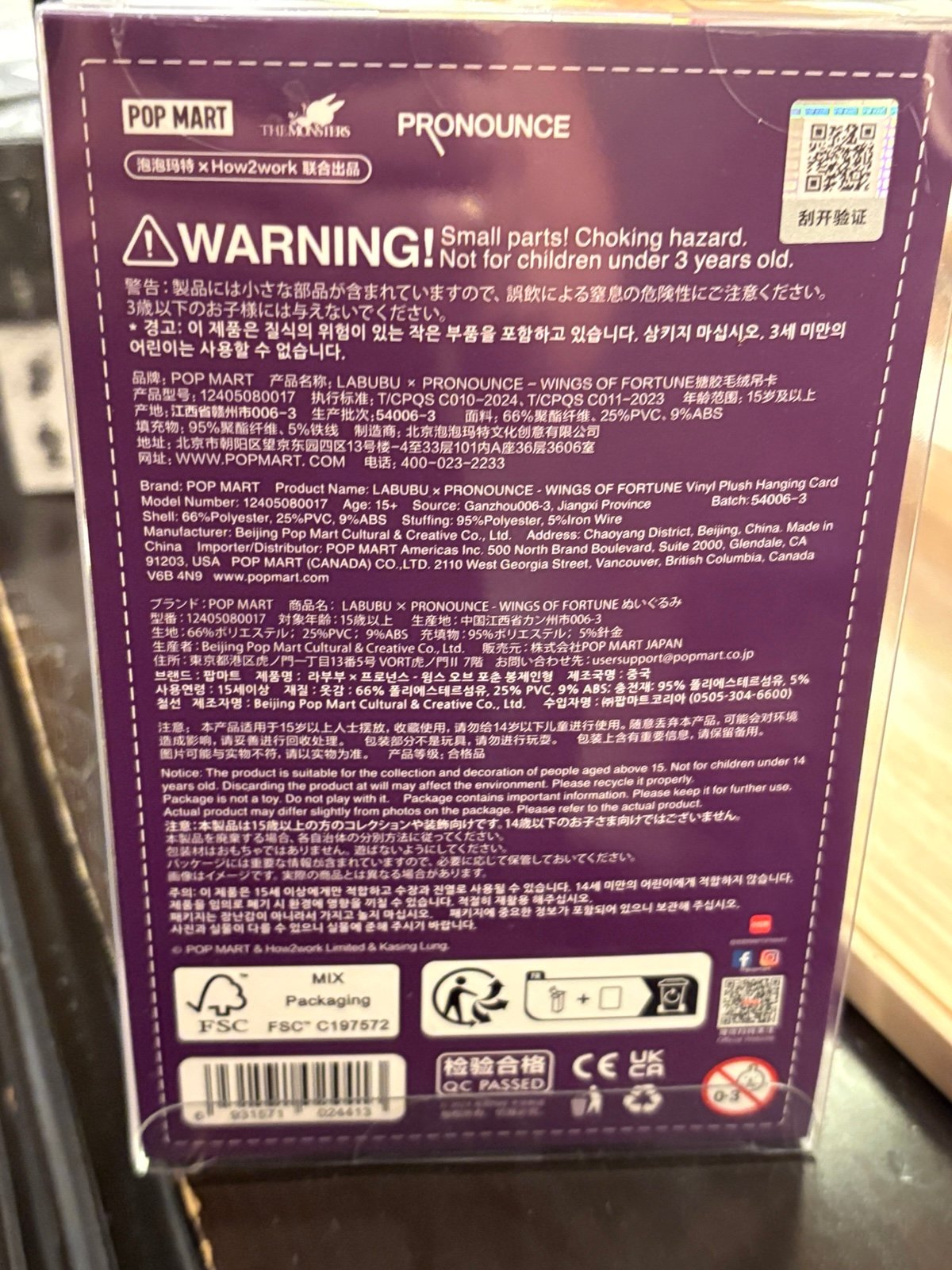 x1 Labubu Pronounce Wings of Fortune plush pendant