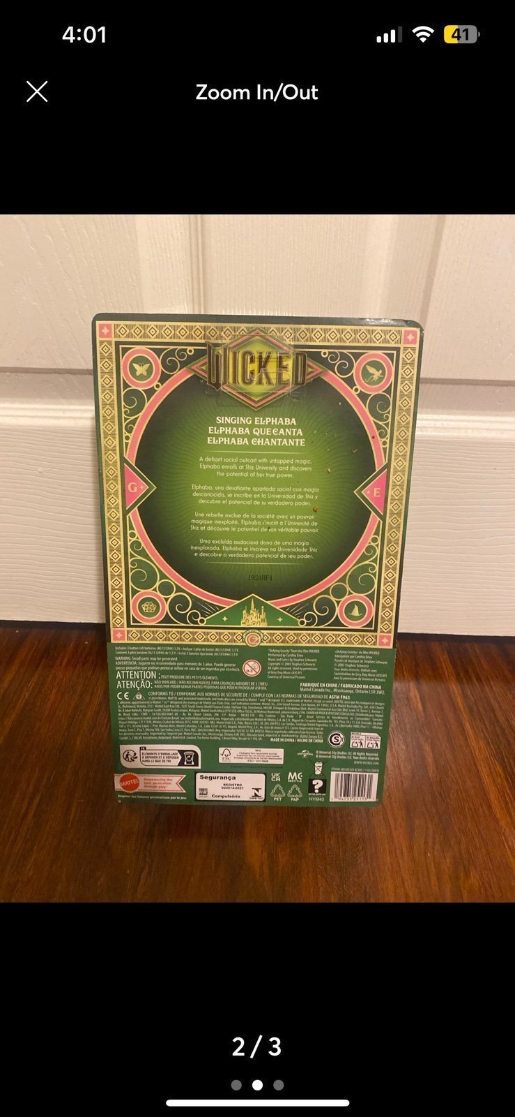 Mattel Wicked Movie Singing Elphaba Fashion Doll Misprint. Please be careful as this box does include Error Wicked website on it!!